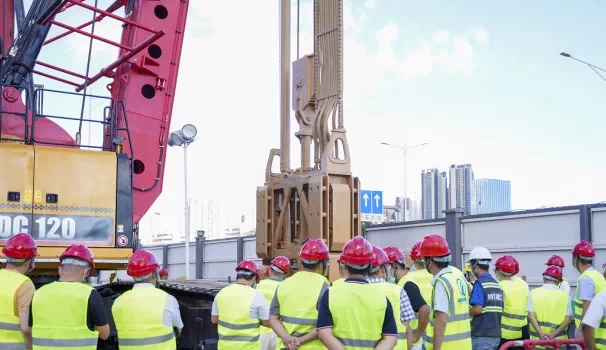 下午3点,精彩接续。好体育投注官网组织众人乘车前往设备施工地,见证并观摩了双轮铣槽机SDC120真实的使用场景,并随后由好体育投注官网智造研究院于卓伟院长详细讲解了产品特点与优势,由来自深圳盛隆建设有限公司的机手刘建合,从产品的智能化、舒适性、施工体验,以及保养等多方面讲述自己的操作感受。