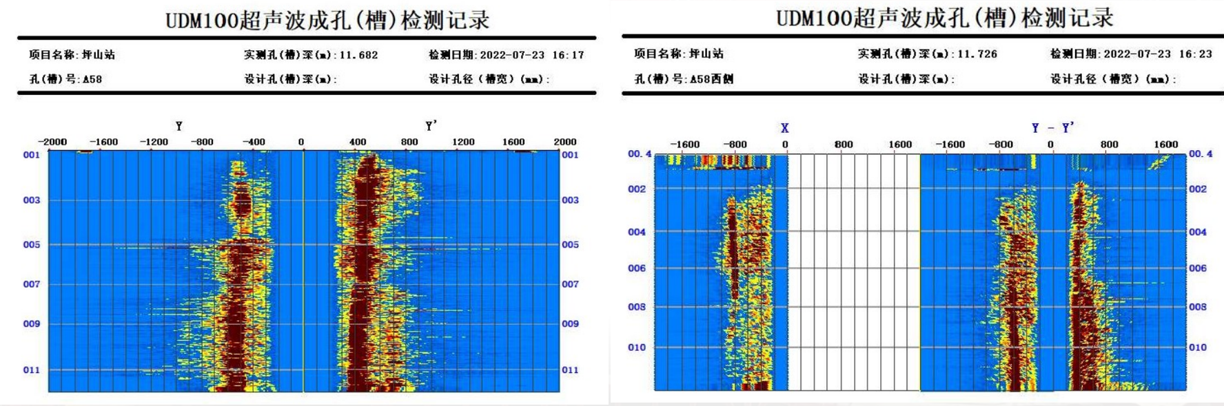 成槽垂直度高,槽段编号为A58的垂直度可达1%。