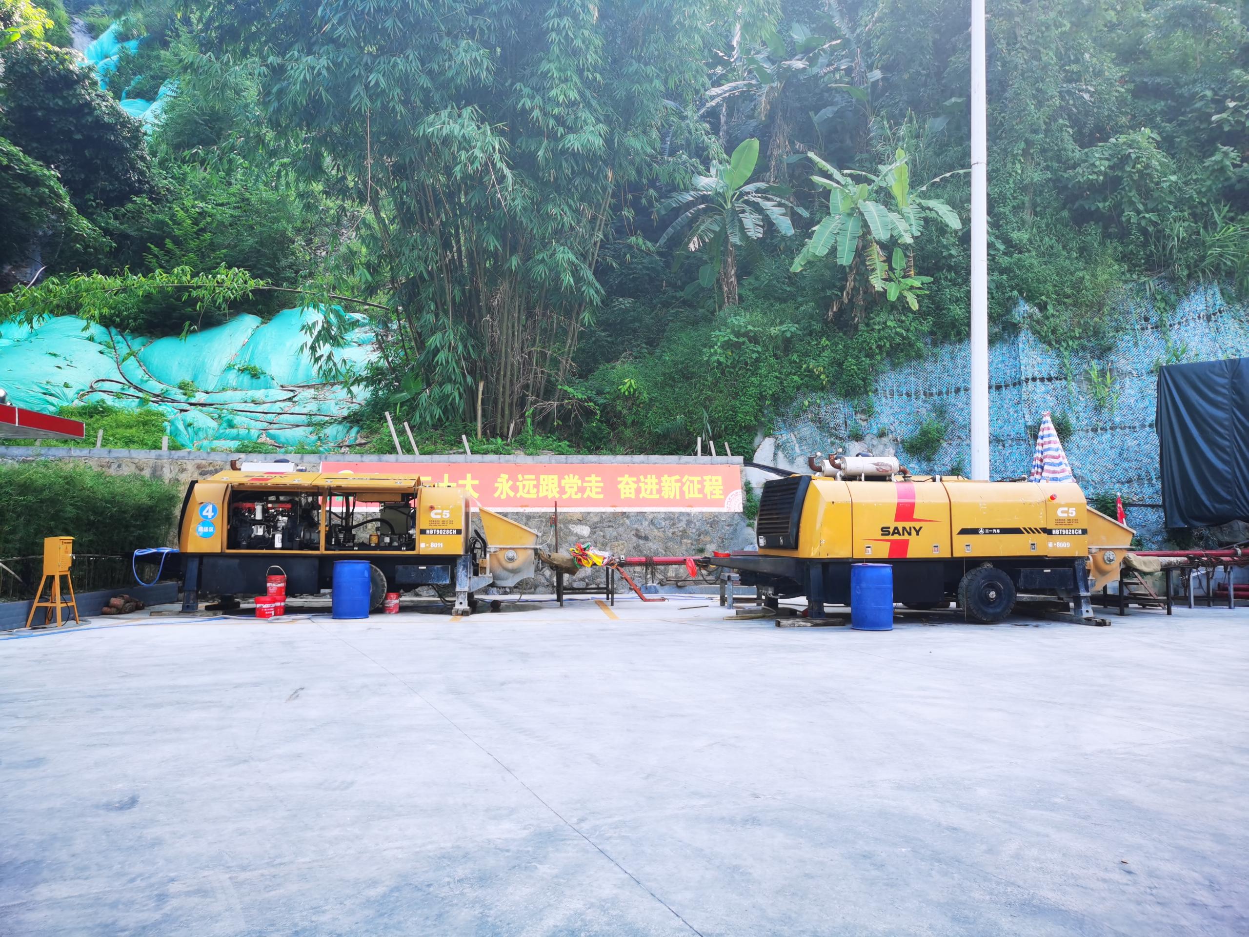 由于天峨龙滩特大桥跨度大,施工难度极高,且地处坡陡壑深,纵横沟谷之中,地质情况复杂,施工工作面狭小,工期紧,所以对泵送设备稳定性和适应性的要求都是极高的。