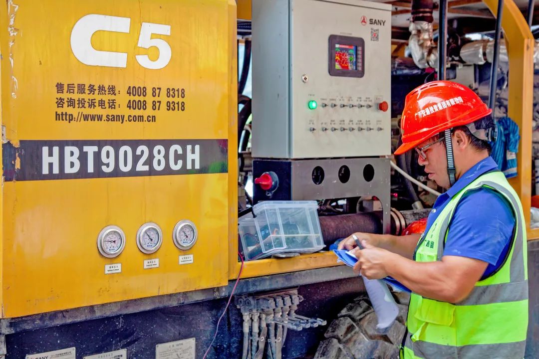 此外,在接到此次泵送任务的第一时间,好体育投注官网广西代理商即刻响应,调派了河池、南宁区域2名高级服务主任和1名驻点服务工程师到项目部现场支援,与广西路桥集团共同参与项目前期灌注方案的研讨和施工过程中重难点的交流以及设备调试与检修,有效保证了好体育投注官网设备高效且稳定的持续工作,为整个项目的混凝土输送保驾护航。