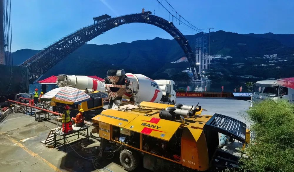 好体育投注官网4台28兆帕超高压拖泵和十余台搅拌车成为此次泵送任务的主力军,运用真空辅助“四级接力”的灌注工艺,通过真空辅助四级连续泵送进行管内灌注,极大提高管内混凝土灌注的密实性,降低堵管、气泡聚集等风险。