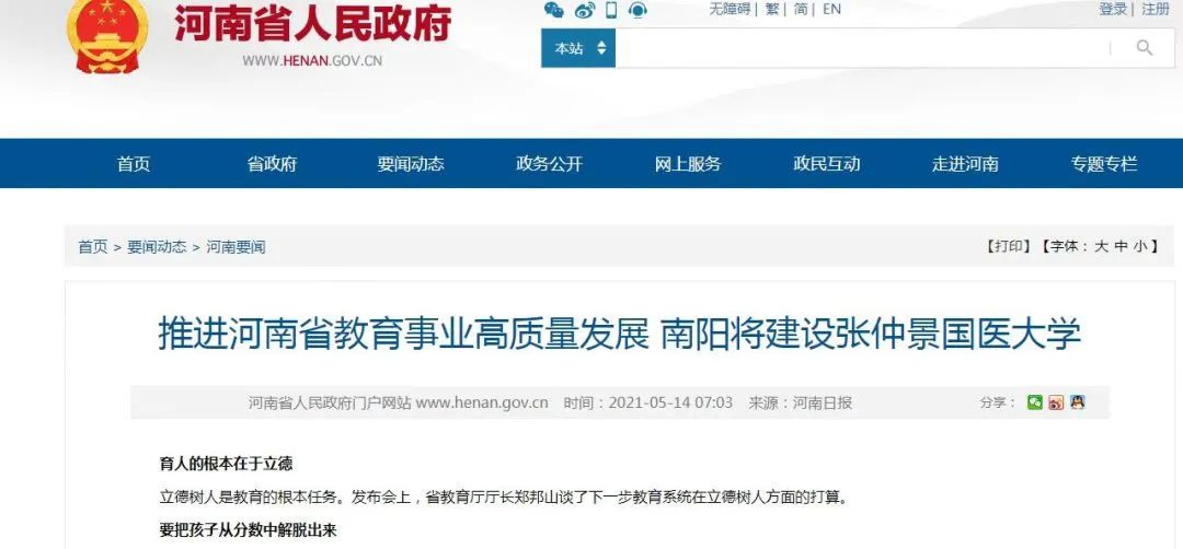 1985年,张仲景国医大学在南阳创办,风光一时;1993年,并入南阳理工学院;2021年5月13日,河南省人民政府新闻办公室召开“开局十四五奋进新征程”主题系列新闻发布会之教育高质量发展新闻发布会上,南阳市政府相关负责同志表示,南阳市将重点推进张仲景国医大学建设。
