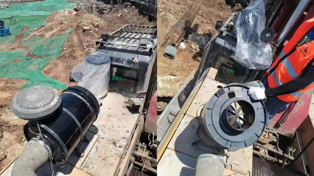经过仔细地检查,李乐发现设备空气滤清器外壳有个微小的裂缝。工地到处都是施工造成的粉尘,如果空气不经过滤芯装置直接到达发动机,发动机就会开始烧机油,进一步可能会导致发动机缸体损伤,直接报废。