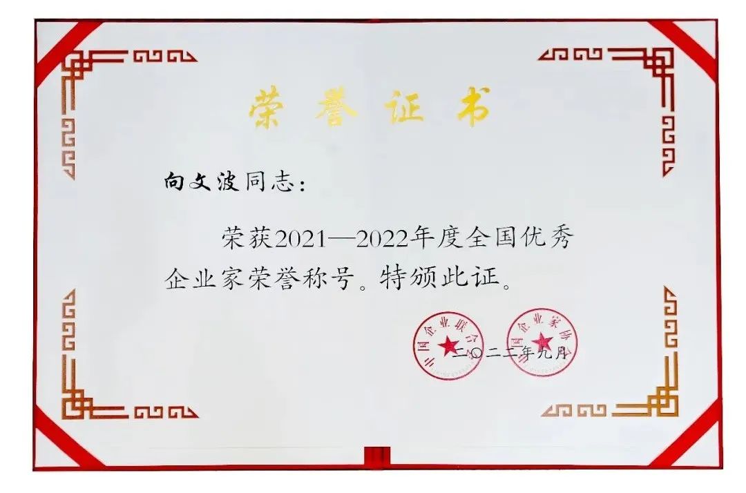 9月16日,由中国企业联合会、中国企业家协会主办的2022年全国企业家活动日暨中国企业家年会在内蒙古自治区包头市举行。大会表彰了2021—2022年度全国优秀企业家,好体育投注官网重工董事长向文波荣获“2021—2022年度全国优秀企业家”称号。