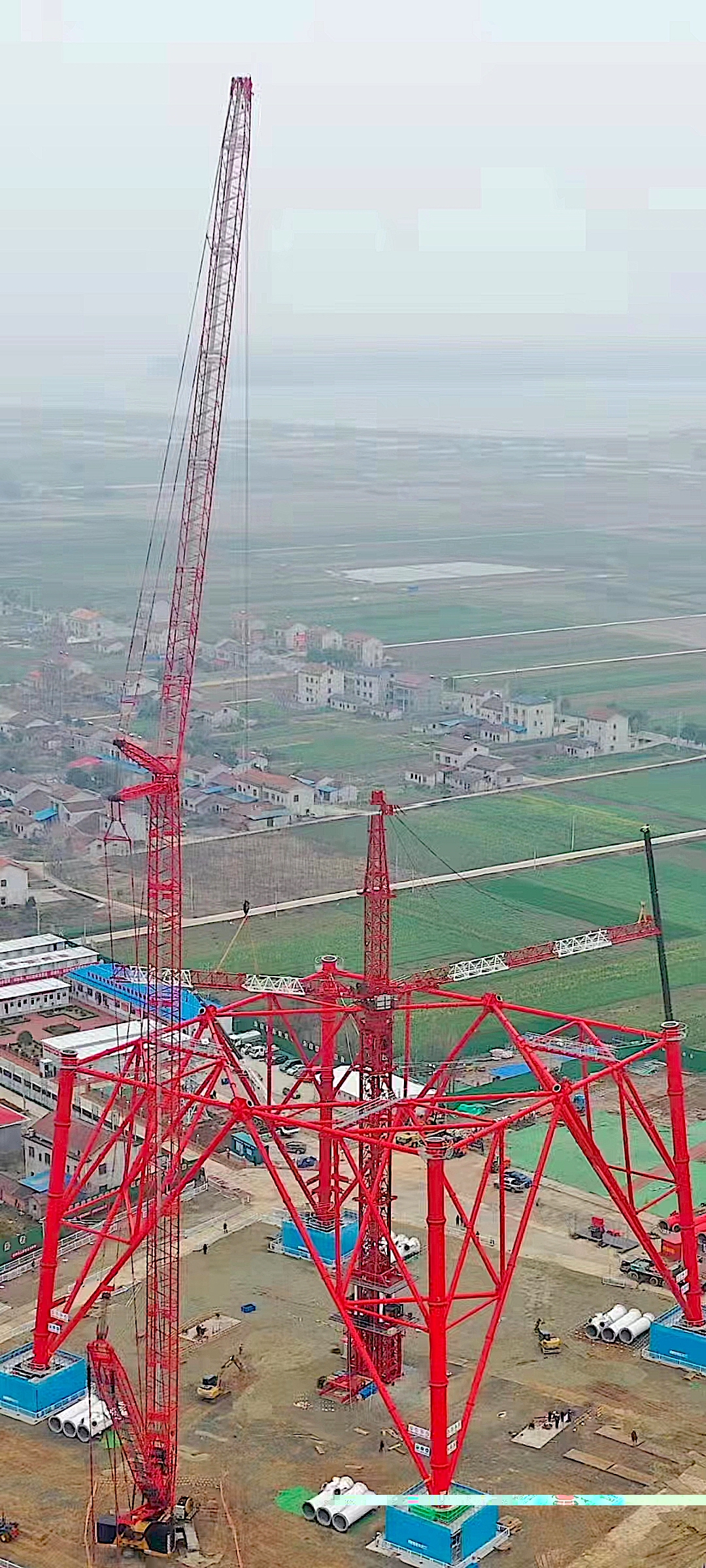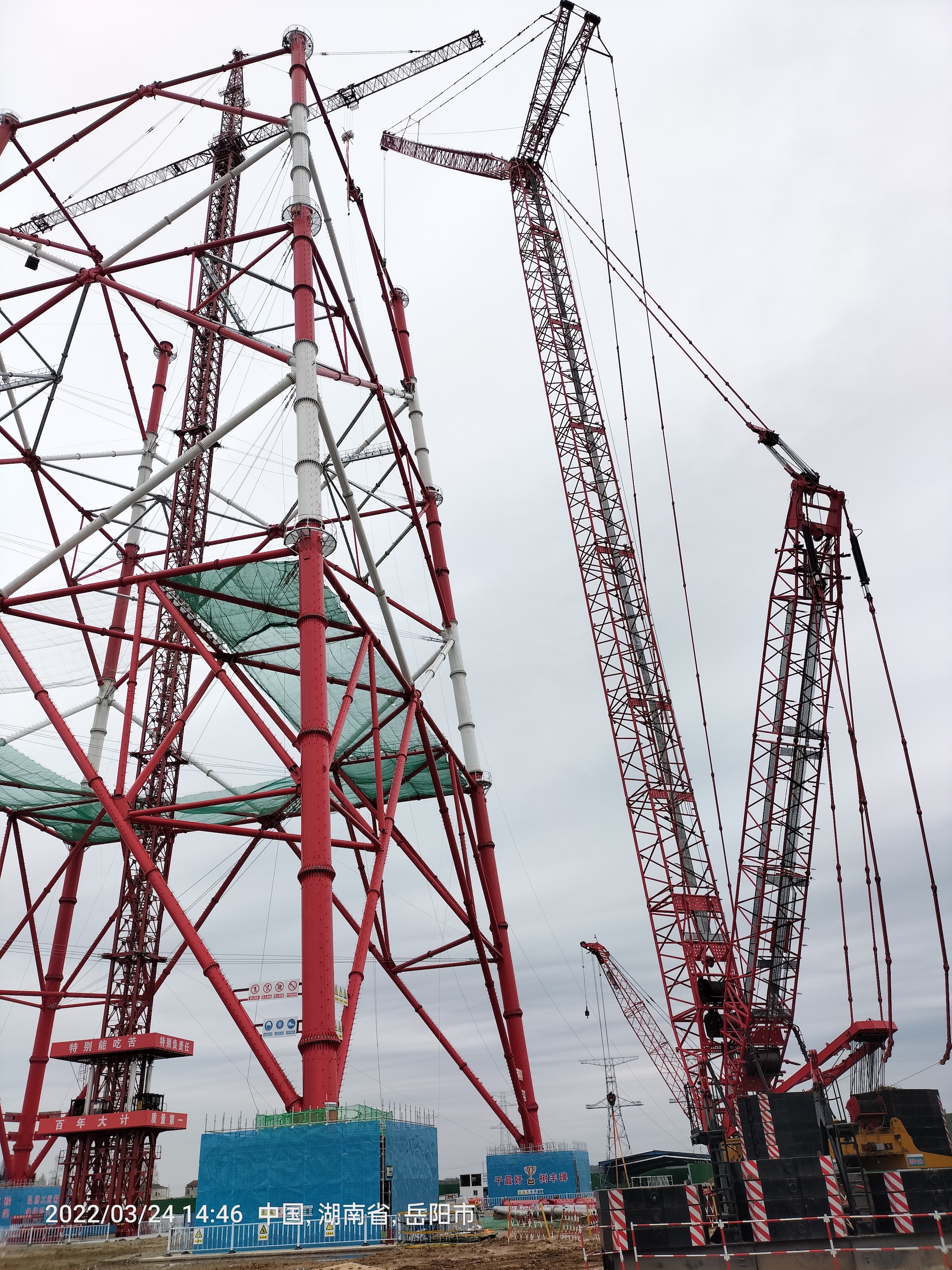 吊装现场,SCC4000A-2采用84m主臂+78m塔况,130t超起工况进行施工,缓缓将一个又一个部件吊起,逐渐实现精准就位,完成对接。