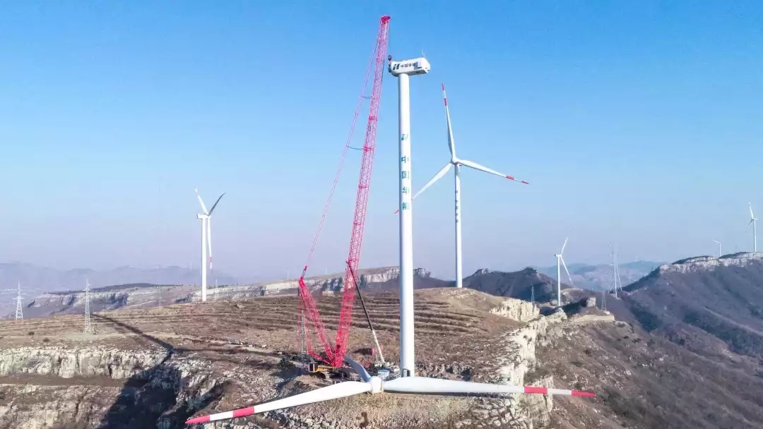 ▲ 华能新能源临沂平邑郑城风电场叶片吊装