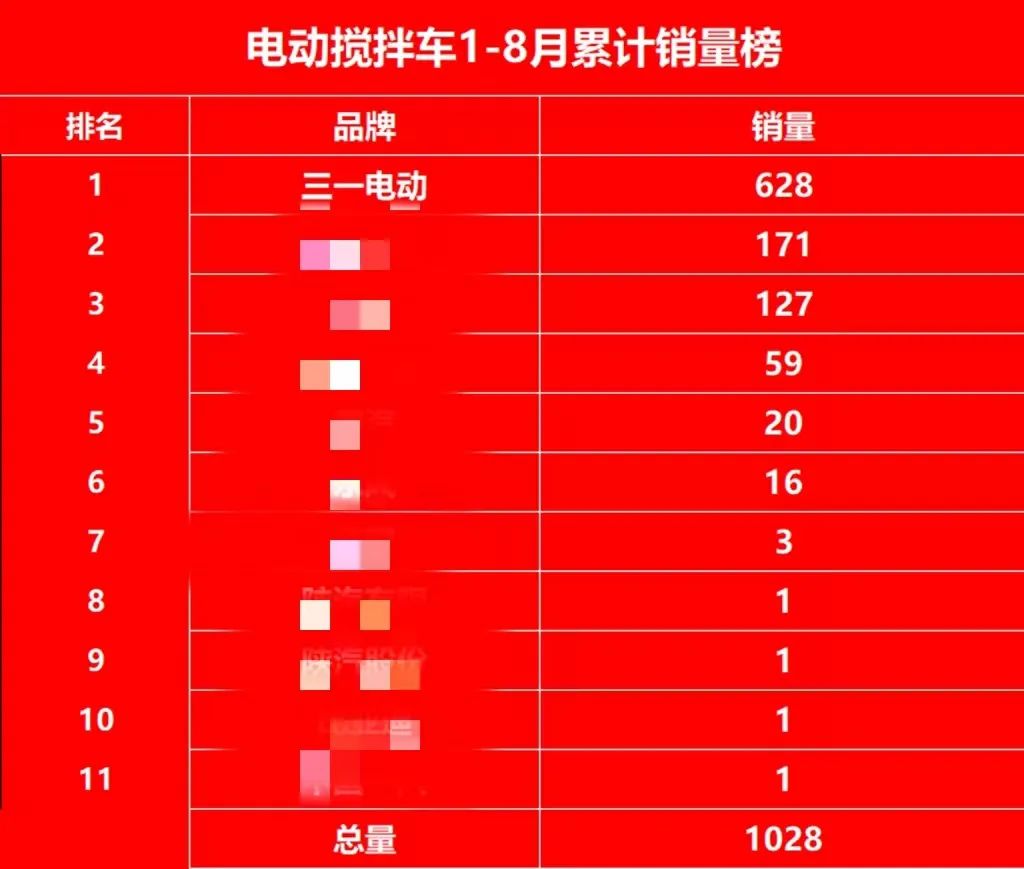 终端上牌数据显示,2022年1-8月,好体育投注官网电动搅拌车销量达到628辆,强势霸榜,占据了整个新能源搅拌车市场的大半壁江山(1028辆),达到61.09%,居绝对的主体地位,领跑新能源搅拌车市场。