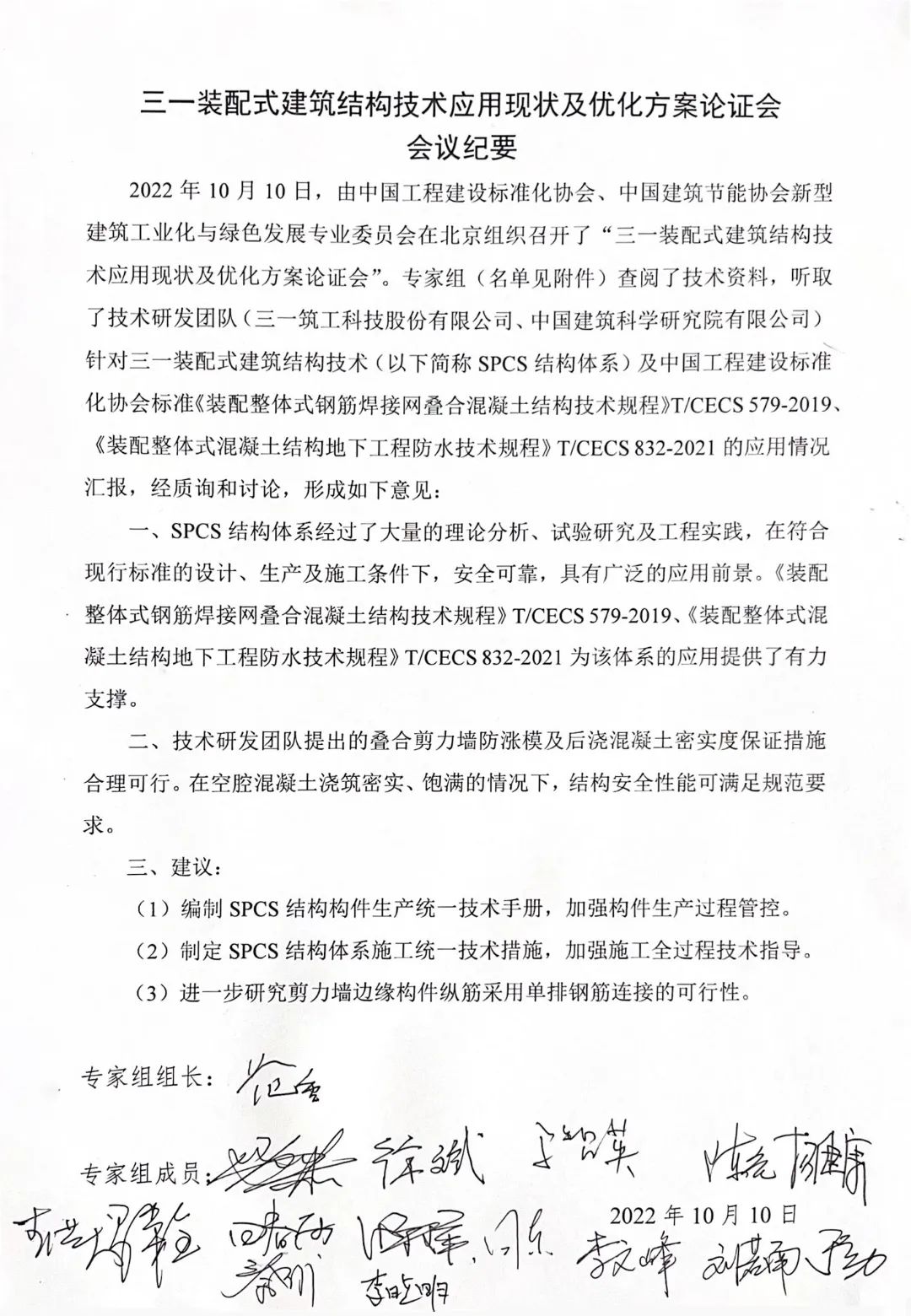 此次会议,由中国建筑设计研究院总工程师、全国勘察设计大师范重担任专家组组长,组织发起技术研讨,中国建筑设计研究院、中国建筑标准设计研究院、中建科技集团、万科集团等多家院所、协会、企业专家纷纷发表意见,大家一致表示,每一项技术的发展都要经过从理论设想、试验验证、出台标准,到项目实践等环节逐渐走向成熟。对于SPCS结构技术通过解决项目应用实际问题不断迭代发展追求卓越的态度值得钦佩。