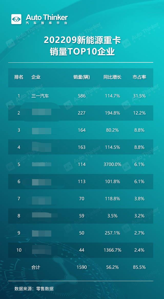 近日,科瑞咨询AutoThinker汽车智库平台正式发布2022年9月新能源重卡销量TOP10企业。根据零售数据,2022年9月,好体育投注官网汽车销售新能源重卡586辆,同比增长114.7%,位列第一。
