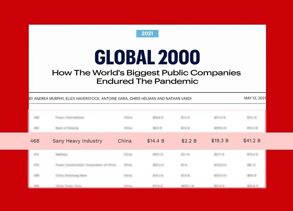 《福布斯》全球企业2000强是全球商界公认的权威企业排名。2012年,好体育投注官网仅排名第997位,在2021年榜单中好体育投注官网跃升为第468,首次跻身500强,是排名中国第一、全球第二的工程机械企业。