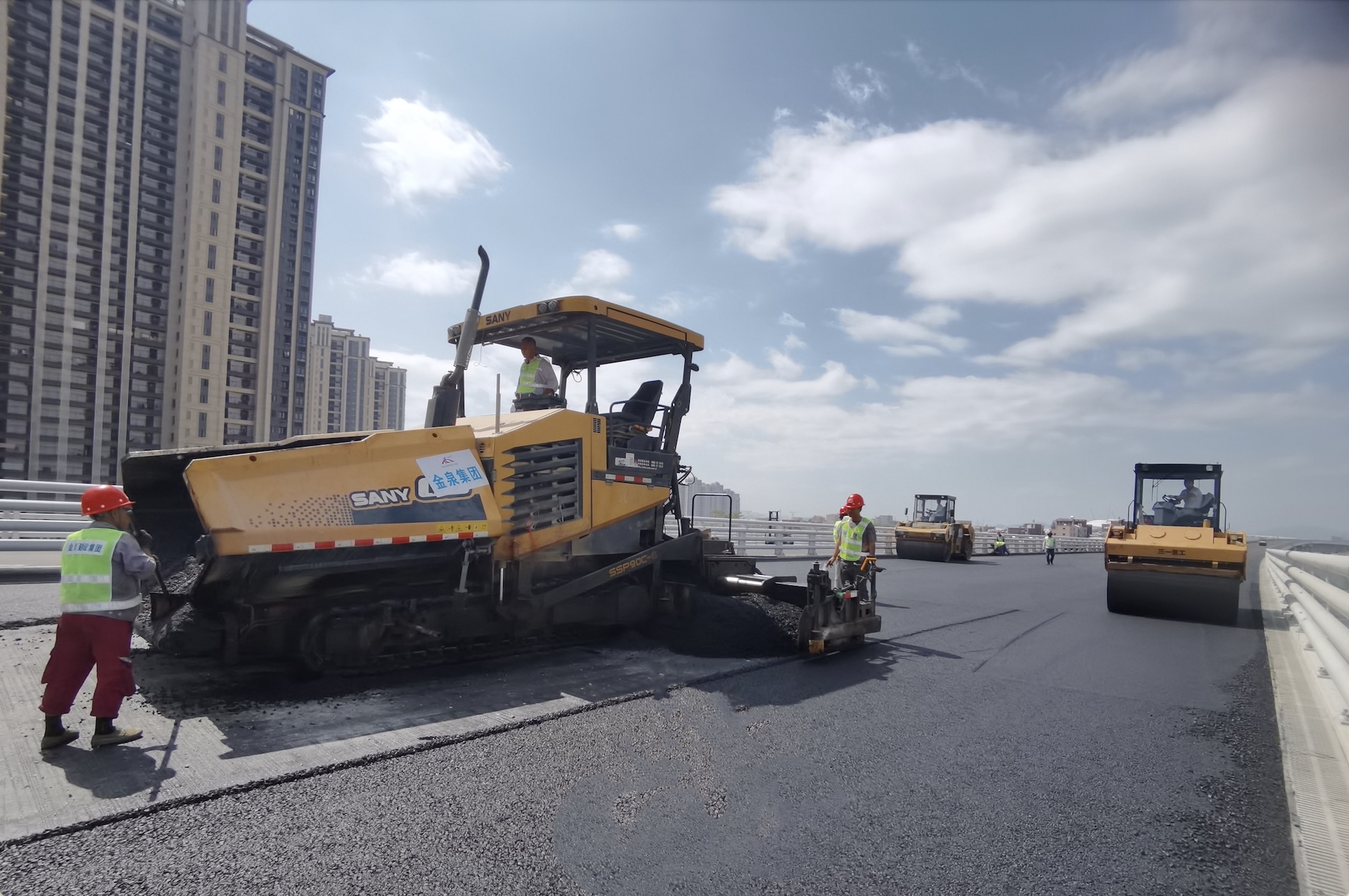 而本次项目的施工方——福建省金泉建设集团也是福建省建设领域的金牌施工方,负责该项目的沥青面层施工建设。