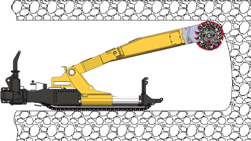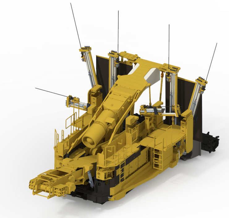 主机配备横向伸缩式截割滚筒,可以根据巷道宽度灵活调整,一次成巷。支护顶板使用双支撑液压油缸,提供300kN支撑力,让操作人员始终处于有支护条件下作业。搭配长距离皮带转载机,可选配30米至100米运输距离,永磁变频驱动,高效节能。另可选自移机尾,实现皮带自主跟进,大大缩短停机时间。