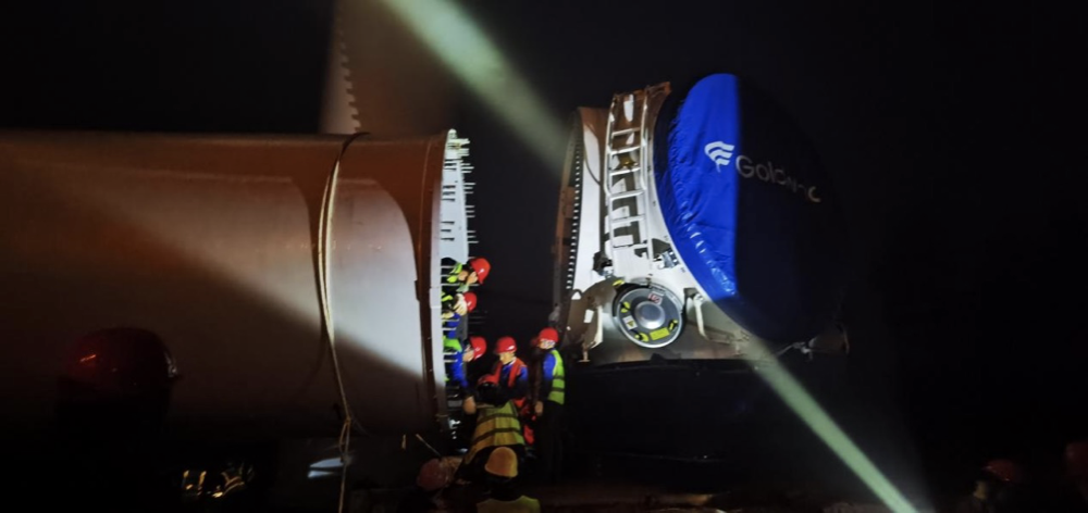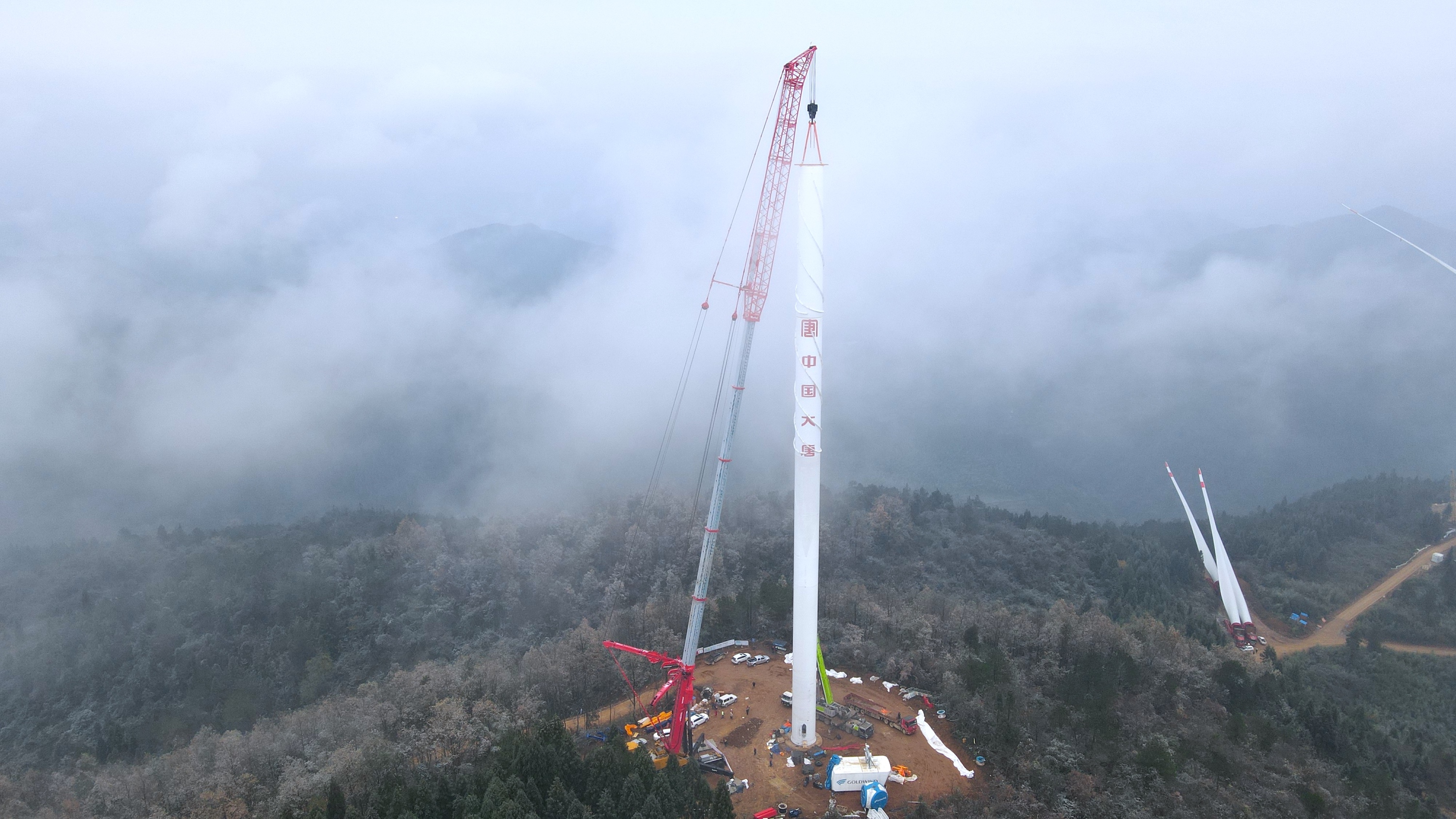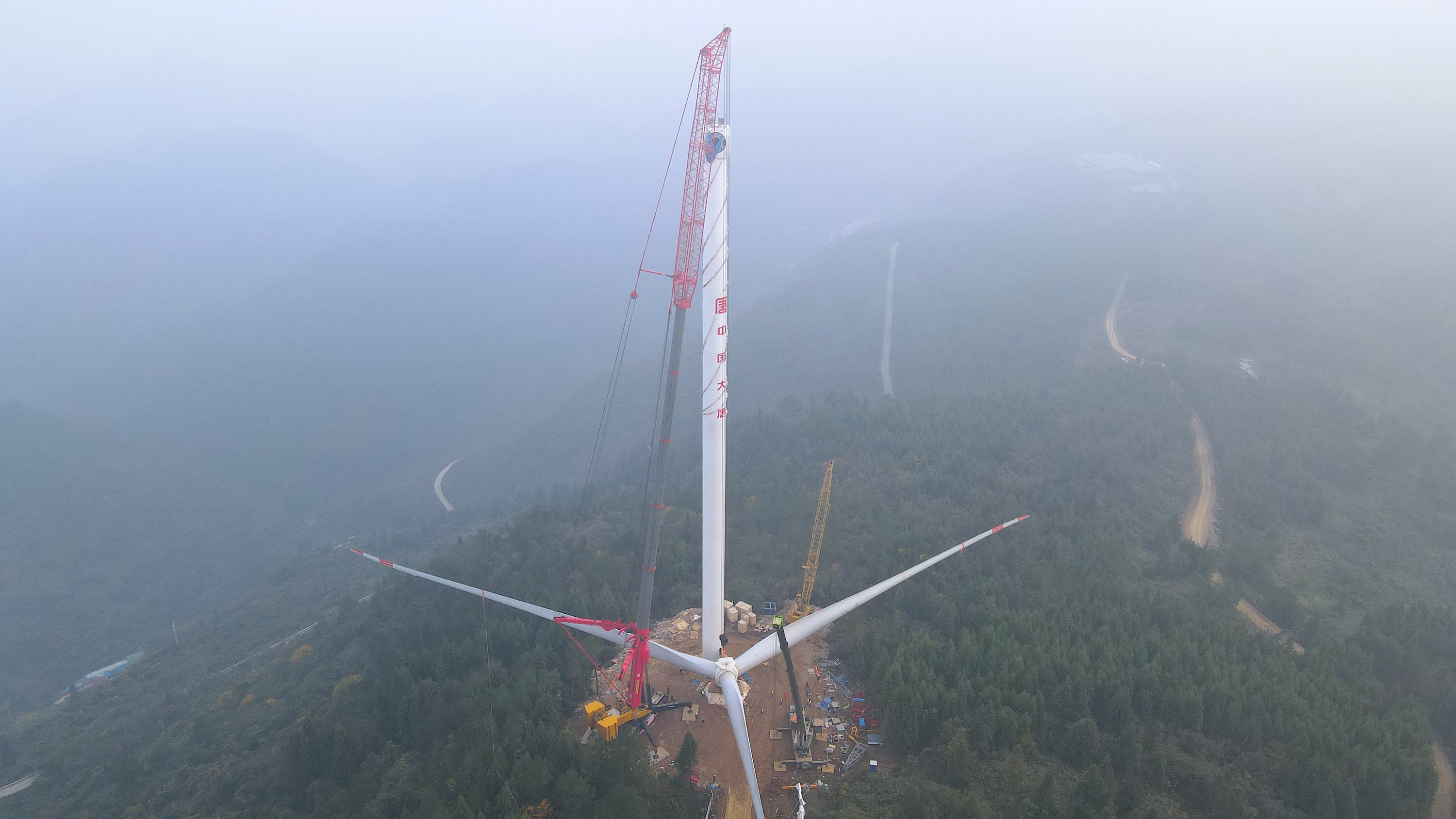 开始组装叶片和轮毂,但由于连续多日降雨和大雾,叶片运输进度极慢,这让守在现场的人都十分心焦。