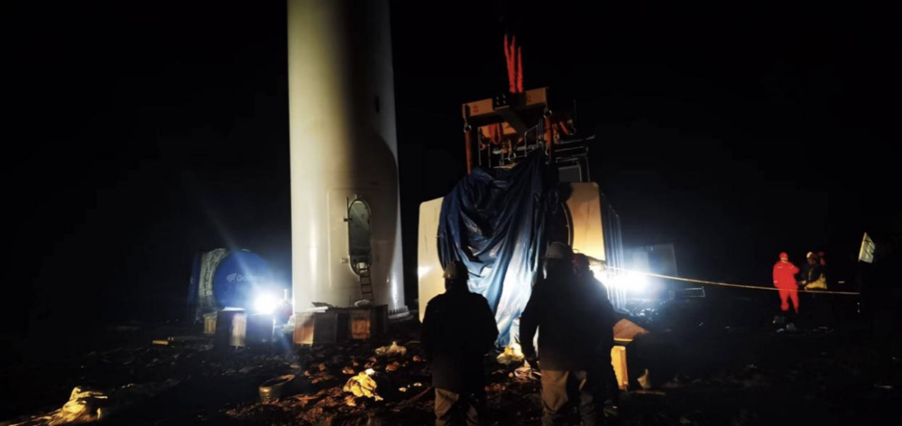 重达78t的传动链被吊载至机舱位置进行组装。