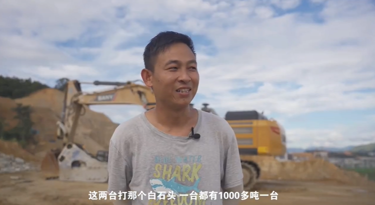 “平时用SY550HB主要是打硬石头,像是风化岩、花岗岩、白石头比较多。现在打白石头一天都有1000多吨一台。操作杆好开,力度也可以,好体育投注官网各个方面都挺不错的。”