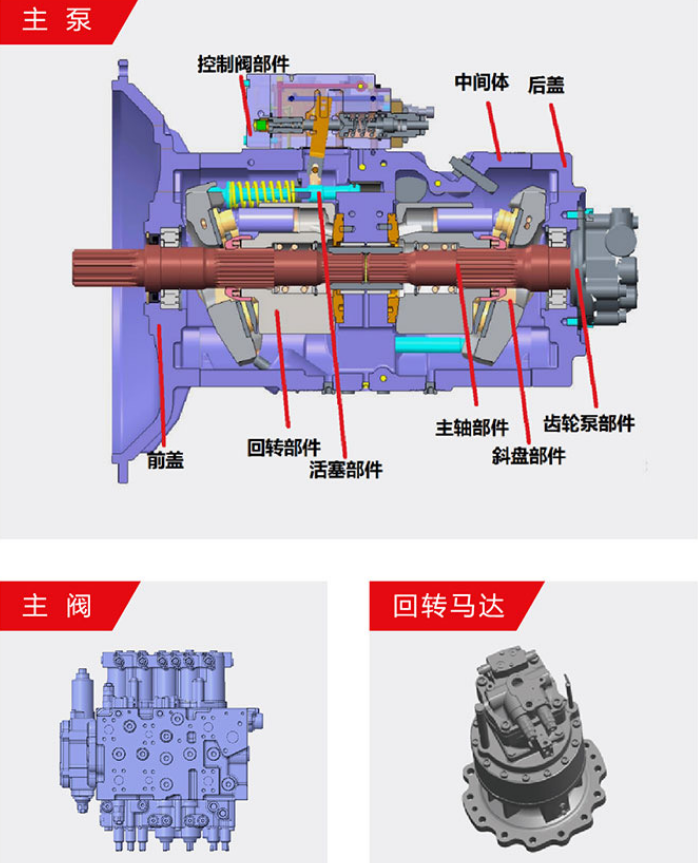 搭载全电控主阀 + 主泵,实现斗杆再生与快速回油。动臂可实现下降再生功能,更加高效节能。搭载130cc大排量主泵,发动机可使用转速范围加大,更容易运行在经济油耗区。全新升级减速机,回转能力提升,斜坡工作能力更强,回转启动速度加快,回转装置提升12%回转能力。