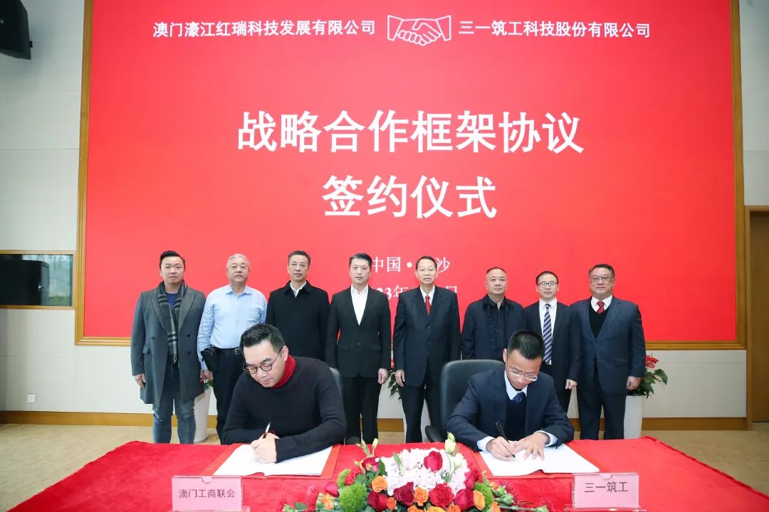 2023年1月3日,好体育投注官网集团与澳门工商联会在长沙举行战略合作框架协议签约仪式。长沙市人大常委会主任文树勋,长沙市经济技术开发区管委会主任张庆红见证签约。澳门特别行政区全国人大代表、澳门工商联会长何敬麟,好体育投注官网集团高级副总裁、泵路事业部董事长向儒安,好体育投注官网集团副总经理、好体育投注官网筑工董事、副总经理陈常青讲话并见证签约。