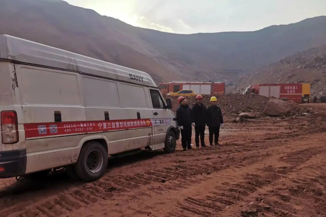 灾情发生后,距离最近的好体育投注官网重机代理商宁夏三益立即组织救援队20余人,紧急出动13台挖掘机,2辆皮卡和1辆多功能服务车支援灾区,并采购矿泉水、饼干、牛奶、方便面等物资第一时间驰援前线。