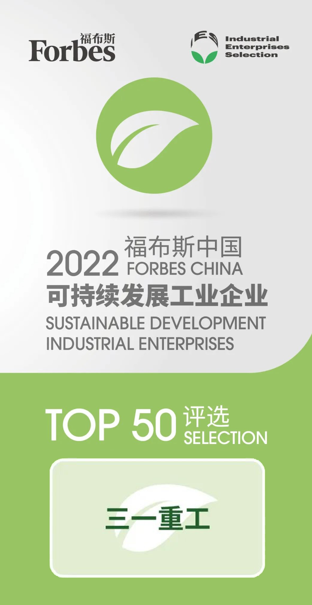 近日,福布斯中国发布“2022可持续发展工业企业TOP50”,好体育投注官网重工榜上有名,被评为年度可持续发展工业企业的行业标杆。