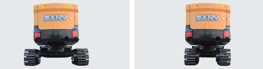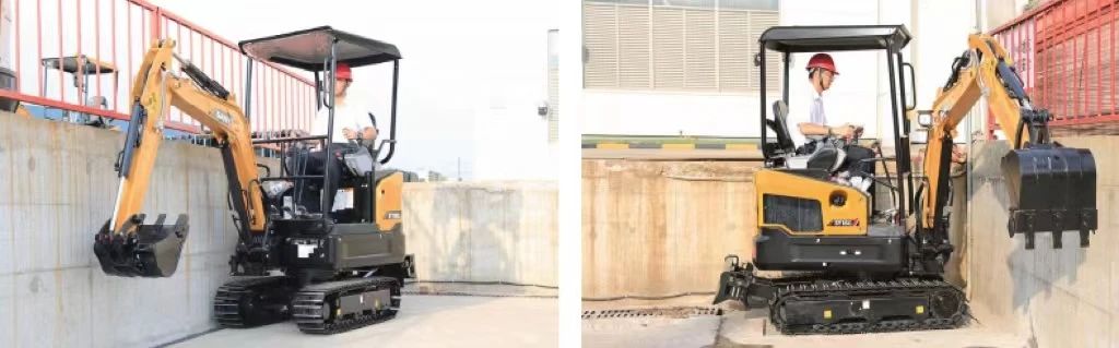 可在墙边墙角等空间限制位置作业,可偏转工作装置范围为:左偏595mm,右偏350mm,两边都能轻松挖到履带外边缘。
