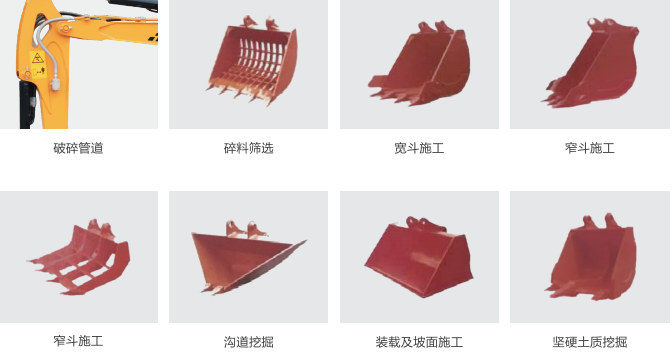 斗齿横销式安装,方便拆卸。长度加长,延长使用寿命。动臂油缸加粗15%增加举升能力。