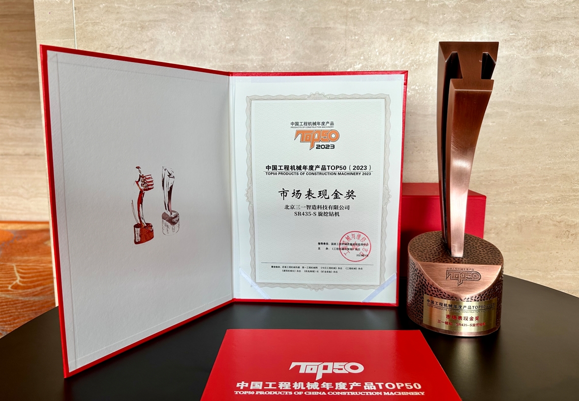 2023年3月28日,“2023中国工程机械年度产品TOP50颁奖典礼"在北京隆重举行。SR435-S旋挖钻机,斩获“中国工程机械年度产品市场表现金奖”。