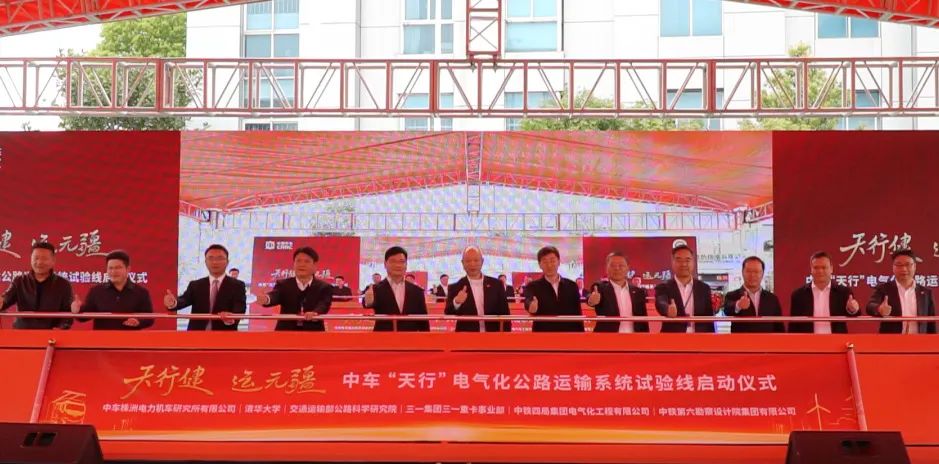 3月28日“天行”电气化公路运输系统发布会暨试验线启动仪式于株洲隆重举行,正式启动我国首条电气化公路试验线。