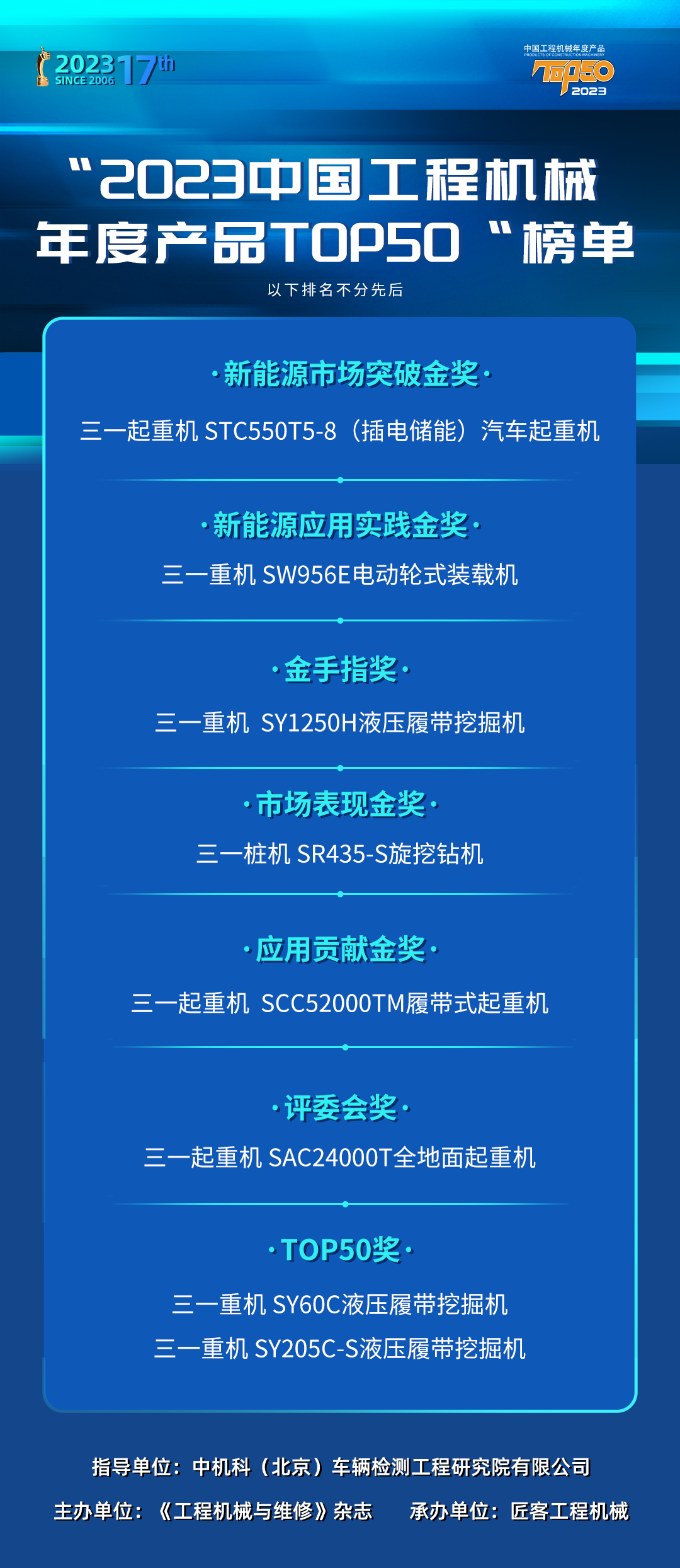 始于2006年的“中国工程机械年度产品TOP50”评选,已经成为了中国工程机械市场产品发展的风向标。作为榜单常客的好体育投注官网,每年上榜产品数和获奖数都名列前茅,彰显硬核实力的同时,引领着行业创新发展风潮。