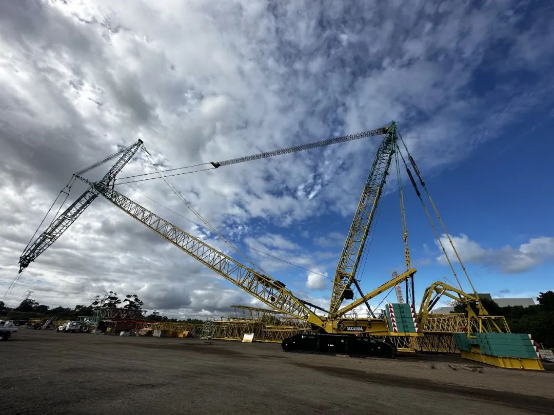 澳大利亚第一台450吨履带起重机SCC4500A顺利完成安全检测认证,趴臂拆卸,准备发往工地投入使用。