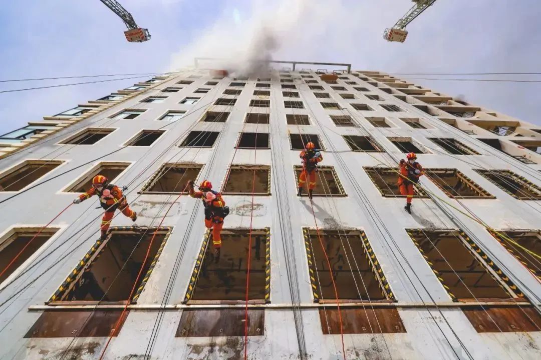 近日,为了增强全社会防灾减灾救灾意识和能力,甘肃省抗震救灾指挥部在兰州新区等地举行抗震救灾实战演习,代号“陇原砺剑•2023”。好体育投注官网重工3台48米大跨度举高喷射消防车、1台32米举高喷射消防车、1台28米强臂破拆消防车、3台PM45多功能城市主战消防车参与演习。