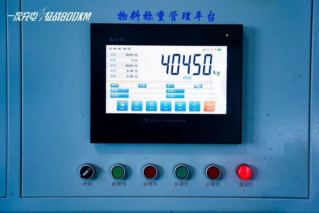 早上8:30,直播正式开启,全程记录魔塔1165电动重卡核验货物、称重、贴封条全过程,车加货物总重40.45吨,等待发号施令,即刻从长沙启航抵深圳。
