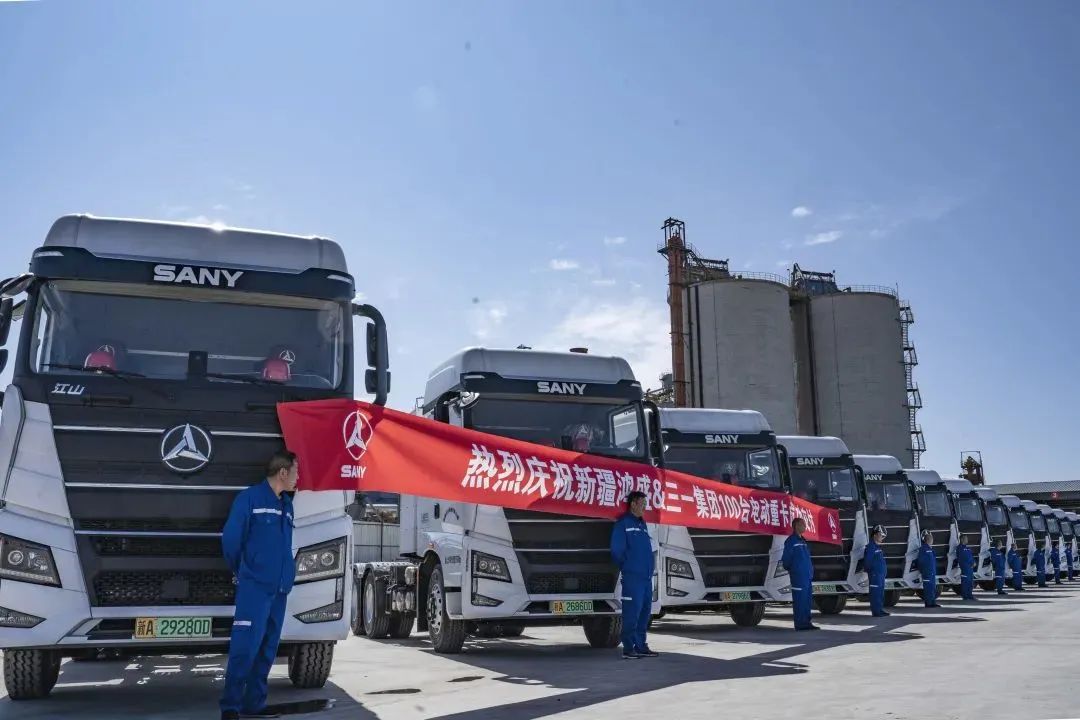 6月25日,新疆鸿盛&好体育投注官网重卡首批100台电动重卡交付仪式在新疆乌鲁木齐隆重举行。
