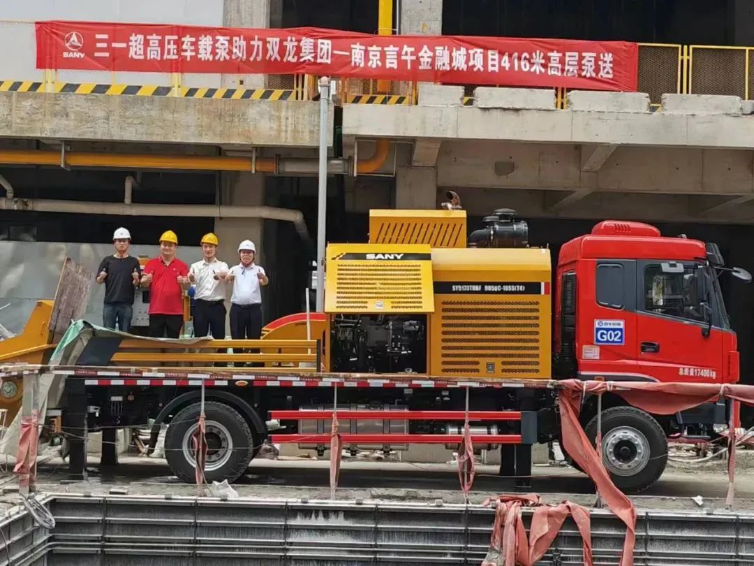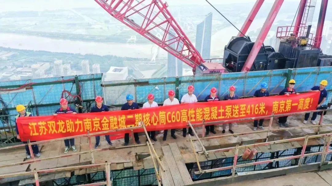 8月27日下午,江苏省南京市金融城二期东区建筑核心筒的混凝土泵送顺利完成,此次由华东材料有限公司旗下双龙集团、言午运输联合好体育投注官网重工,率先突破设备和技术限制,系国内首次采用超高压车载泵完成416米的高层泵送。