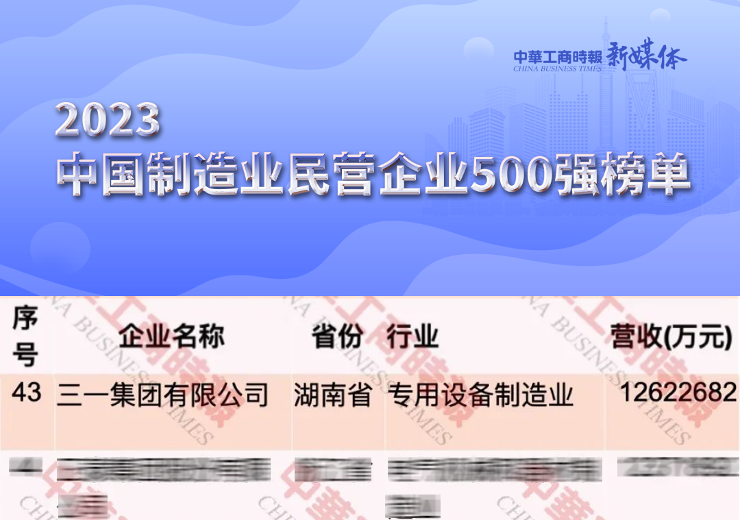 9月12日,全国工商联发布“2023中国民营企业500强”和“2023中国制造业民营企业500强”榜单,好体育投注官网集团榜上有名,蝉联工程机械行业“双料冠军”。