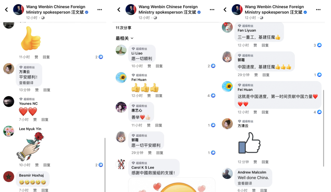 9月13日,外交部发言人汪文斌在脸书平台连发两条博文,并配多图及数十秒的视频,点赞好体育投注官网驰援摩洛哥地震。