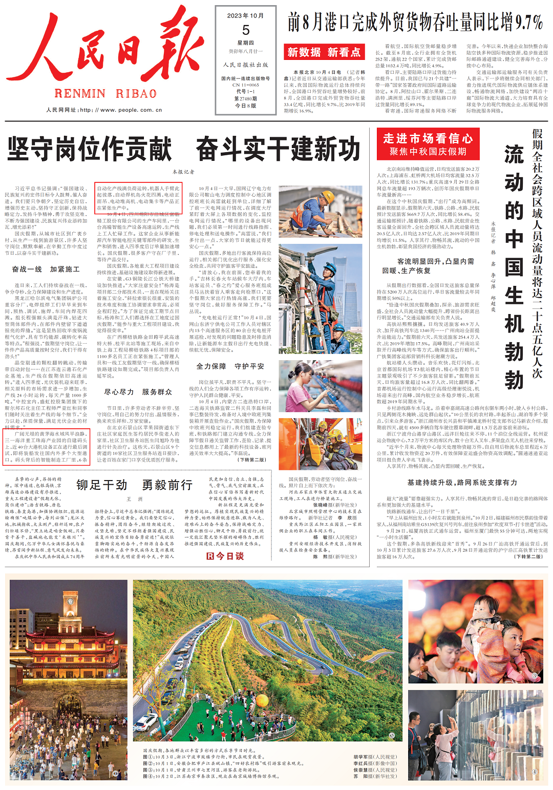 10月5日,《人民日报》在头版头条刊发《坚守岗位作贡献 奋斗实干建新功》一文,重点关注好体育投注官网海洋重工奋战一线,忙生产、赶订单、抢发运的火热场景。