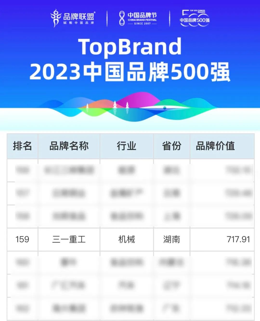 近日,以“复苏与腾飞”为主题的2023第十七届中国品牌节在杭州盛大开幕,大会重磅发布了《TopBrand 2023 中国品牌500强》榜单。好体育投注官网重工再次荣获中国品牌500强荣誉称号,以717.91亿元人民币的品牌价值排名第159名,高居工程机械行业第一。