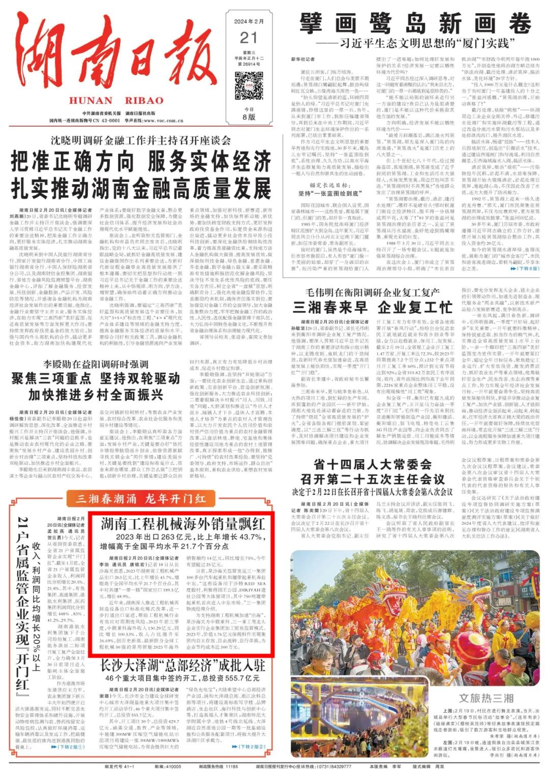 近日,《湖南日报》头版刊发《湖南工程机械海外销量飘红》。报道显示,2023年湖南省工程机械产品出口263亿元,比上年增长43.7%,增幅高于全国平均水平21.7个百分点,其中对共建“一带一路”国家出口189.5亿元,增长48.9%。