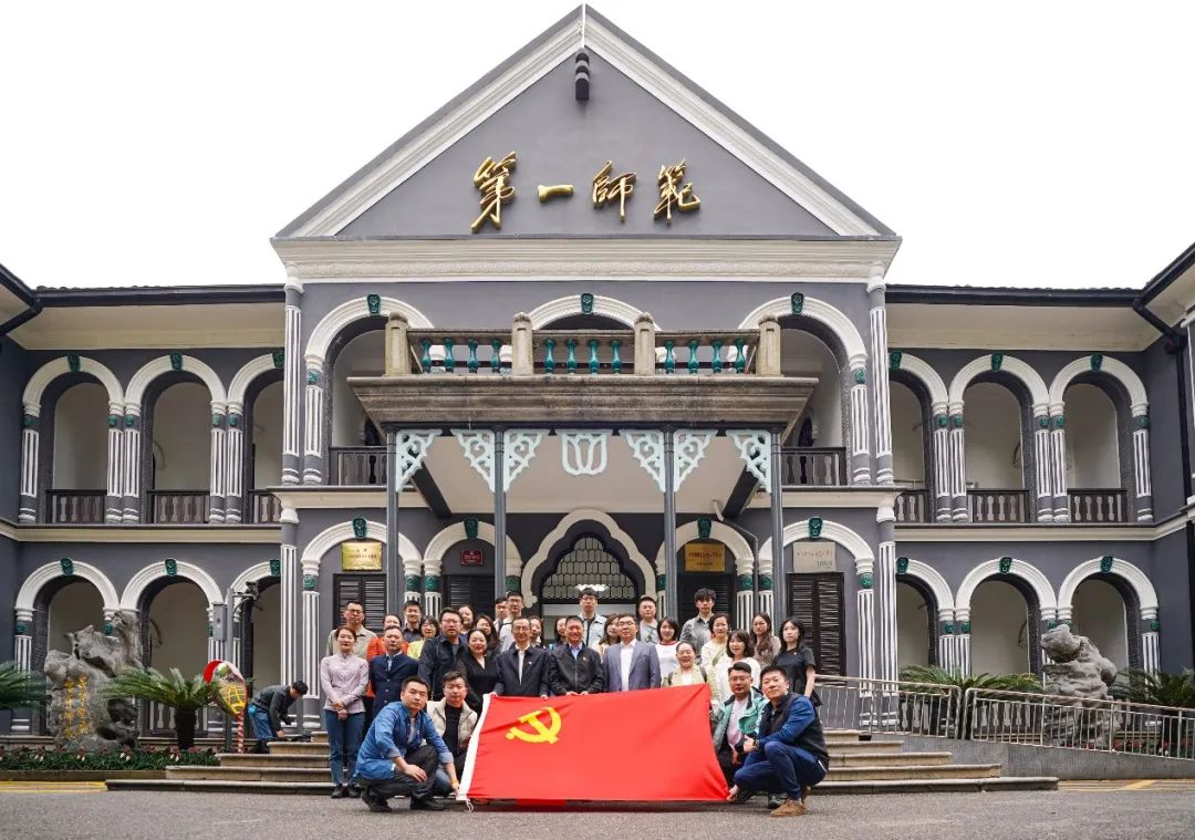 3月18日,习近平总书记赴湖南考察,首站选在了具有深厚历史底蕴的湖南第一师范学院(城南书院校区)。此次“红色引领 向‘新’而行 探寻新质生产力”主题党日活动,紧跟习近平总书记步伐也来到这里,以此作为活动的起点。湖南第一师范学院不仅是湖湘文化的重要发源地,更是中国革命的“红色摇篮”,走出了毛泽东、蔡和森、何叔衡、任弼时、李维汉等一大批革命先辈。习近平总书记在湖南第一师范学院考察时的重要讲话,体现了习近平总书记对教育救国、科教兴国、教育强国的深邃历史洞察,饱含了对青年学子成长成才的殷切期望。