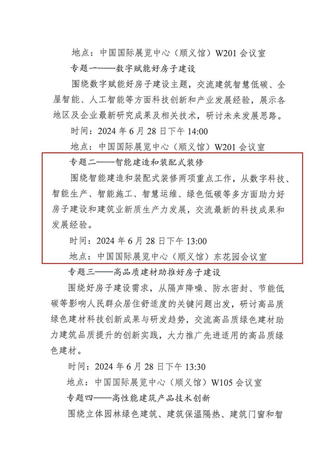 第二十一届中国国际住宅产业暨建筑工业化产品与设备博览会 ( 简称:中国住博会)将于2024年6月27日至29日在北京中国国际展览中心(新馆)隆重举办。好体育投注官网筑工展厅位置 E3 馆 E3C02 号展位,同时,好体育投注官网筑工科技股份有限公司承办的“好房子科技创新交流会专题二——智能建造和装配式装修”也将于6月28日下午13:00在中国国际展览中心(顺义馆)东花园会议室举行。届时,好体育投注官网集团总裁助理、好体育投注官网筑工科技股份有限公司总工程师、教授级高级工程师马云飞即将参加主题为《智能建造赋能好房子建设的探索与实践》的演讲,欢迎各位莅临指导!