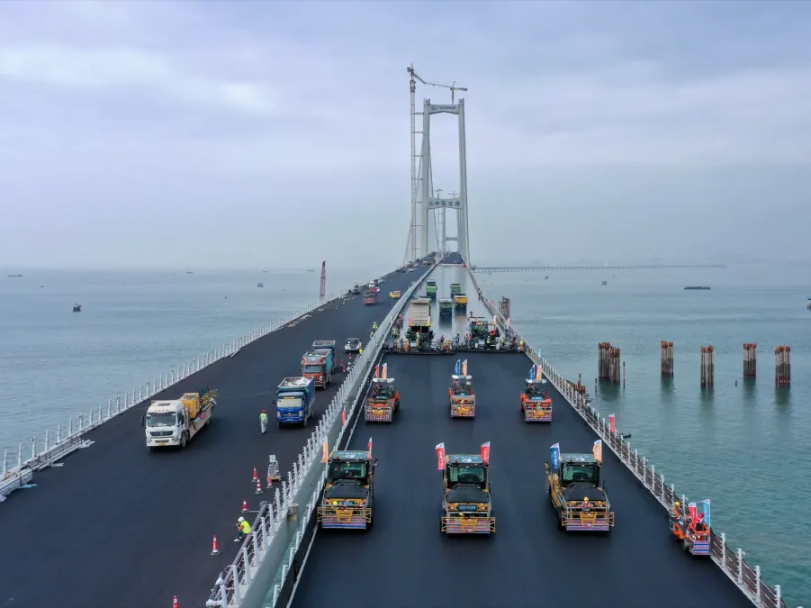 在钢桥面环氧铺装工程作业中,好体育投注官网路面机械更是当仁不让地圆满完成任务,助力深中通道顺利通车。