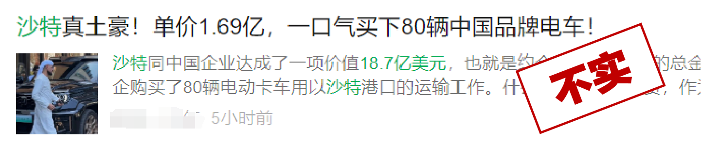 “沙特18.7亿美元买中国80辆电动车”