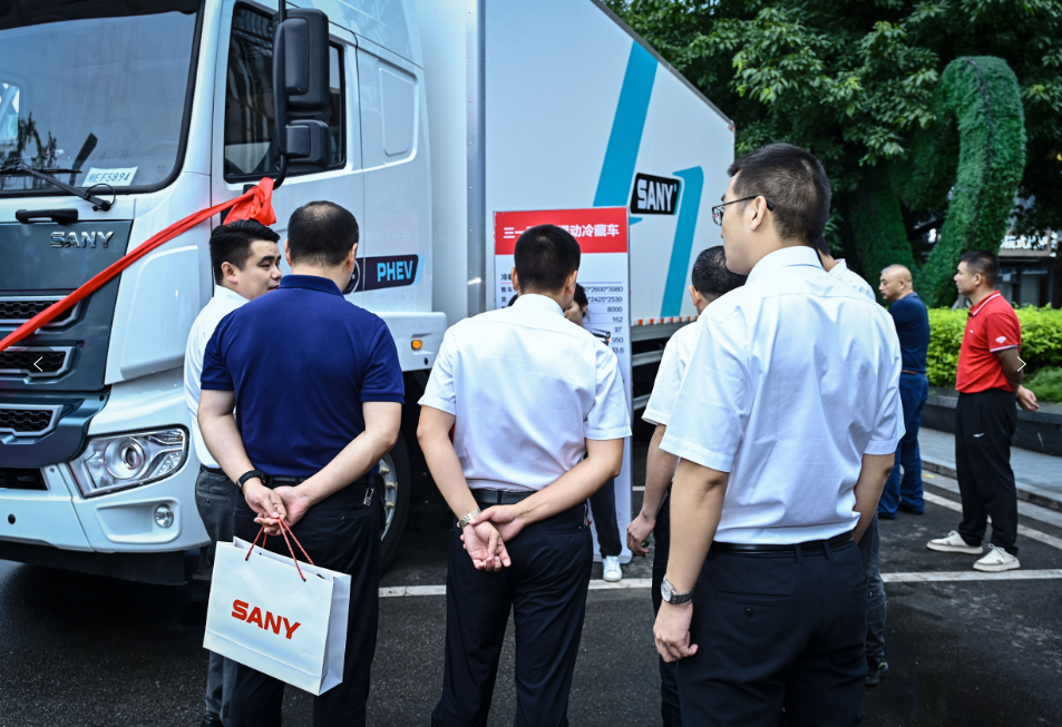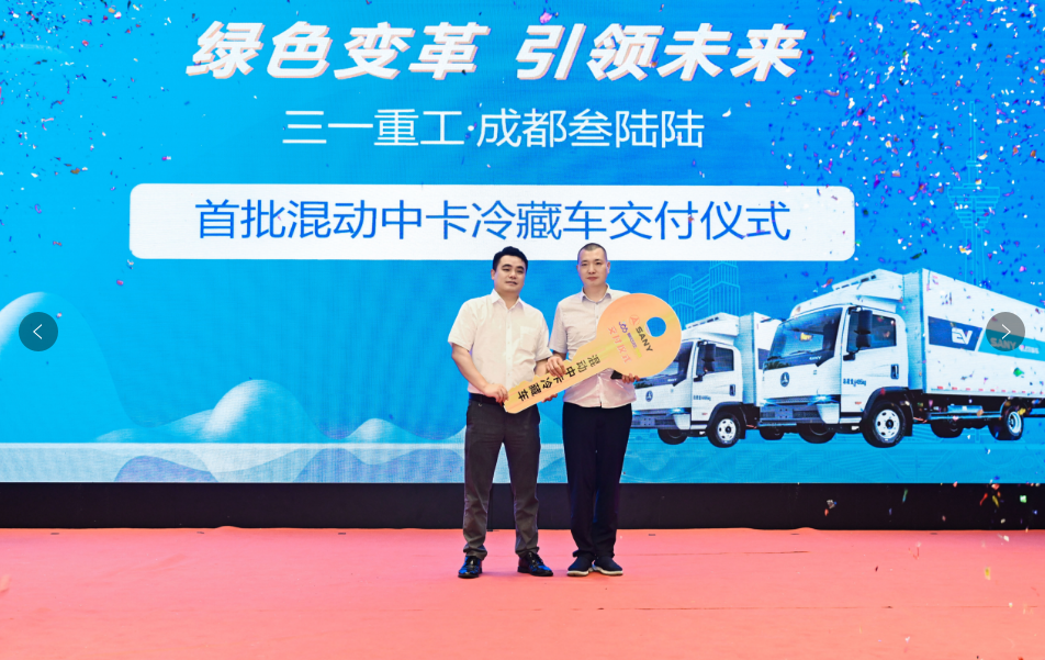致辞环节后,好体育投注官网重工·成都叁陆陆举行了“首批混动中卡冷藏车交付仪式”,好体育投注官网重工代表将象征着“精诚合作”的冷藏车金钥匙交付给成都叁陆陆代表,这意味着冷藏车正式交付客户使用,也代表着双方正式携手合作,共同为绿色冷链运输行业贡献力量。