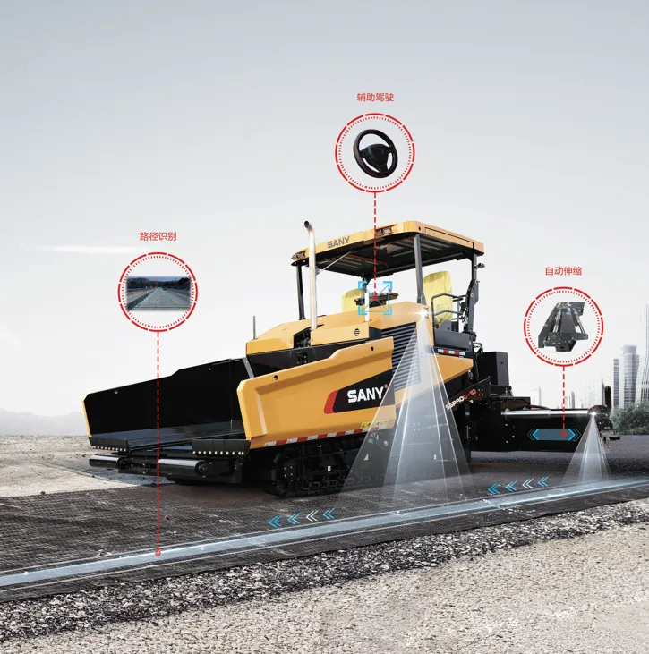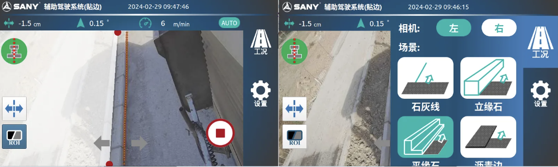 行业首创摊铺机辅助驾驶、自动变宽系统。实时识别路沿石、石灰线、桥梁等道路边缘物体,实现摊铺机自动转向、熨平板自适应伸缩。