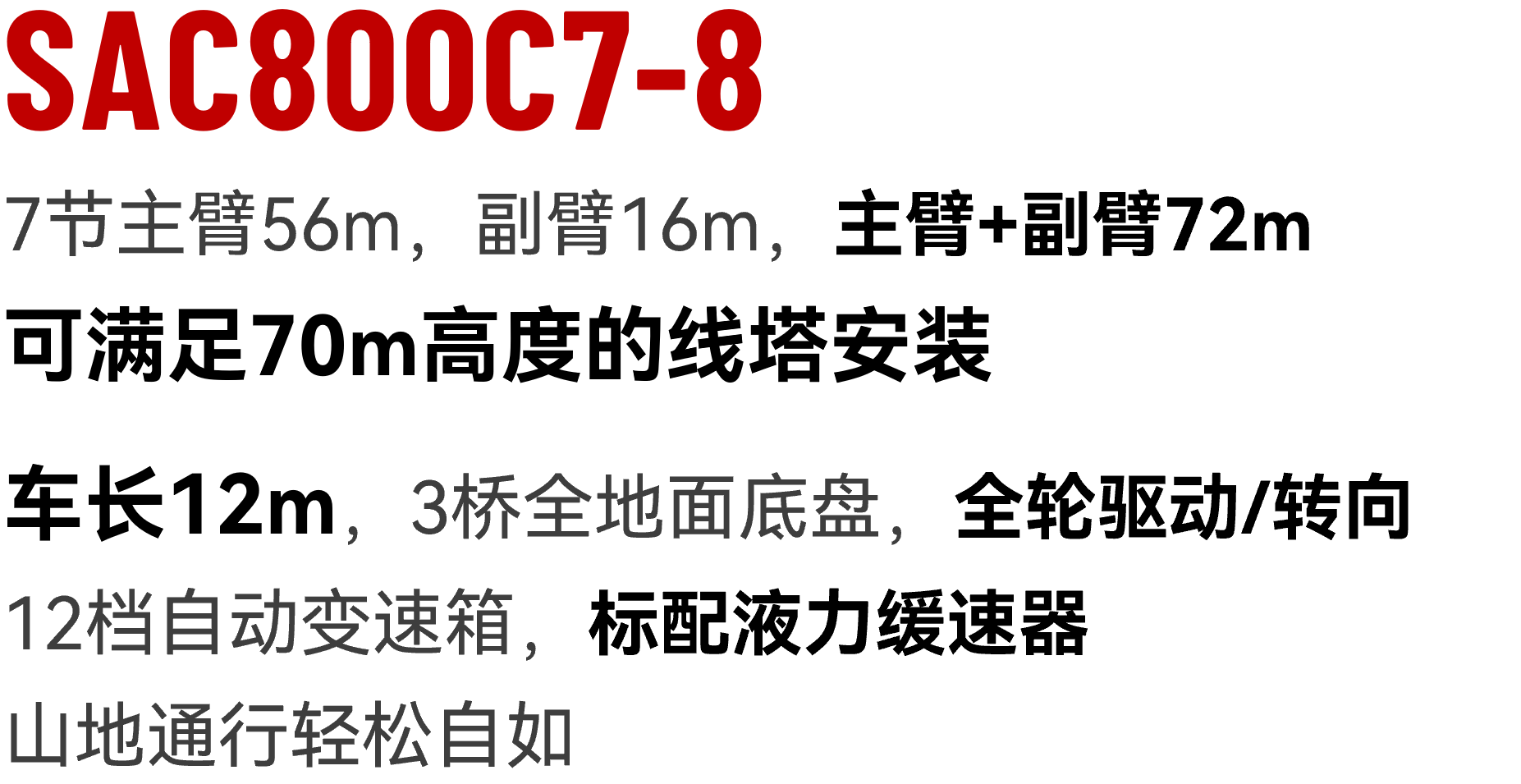 作为我国特高压建设重要省份,四川多条特高压线路、变电站建设活跃,也为吊装市场输入了一股动能。最近,又一全地面新机型SAC800C7-8加入组队,在哈密-重庆800千伏特高压直流输电工程四川段,承担70m高度线塔安装任务。
