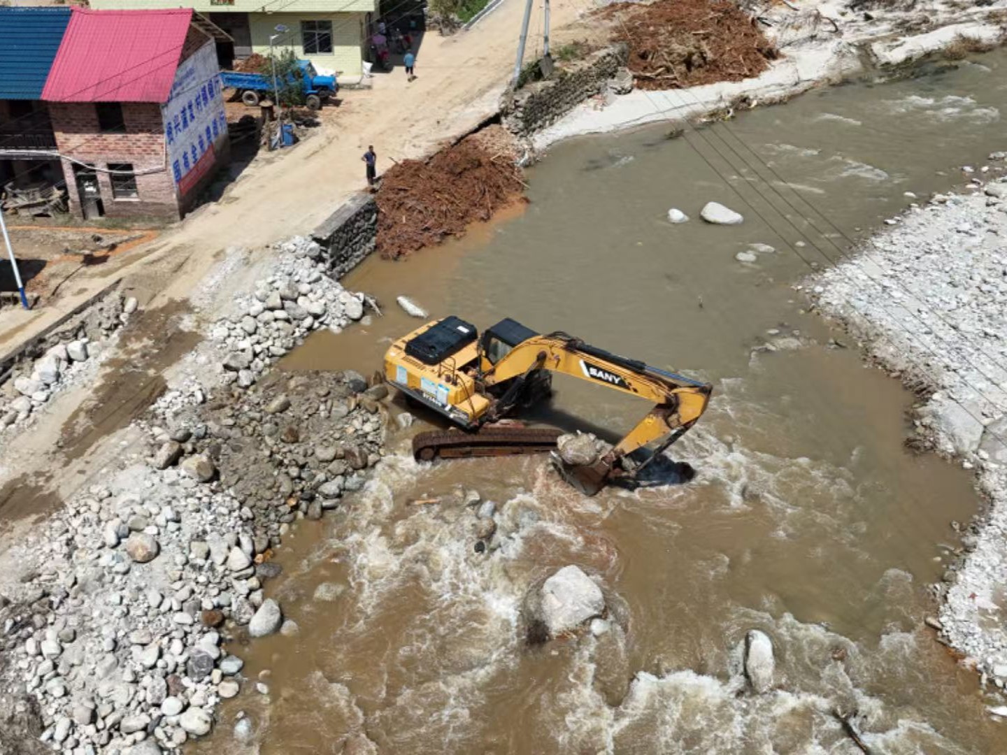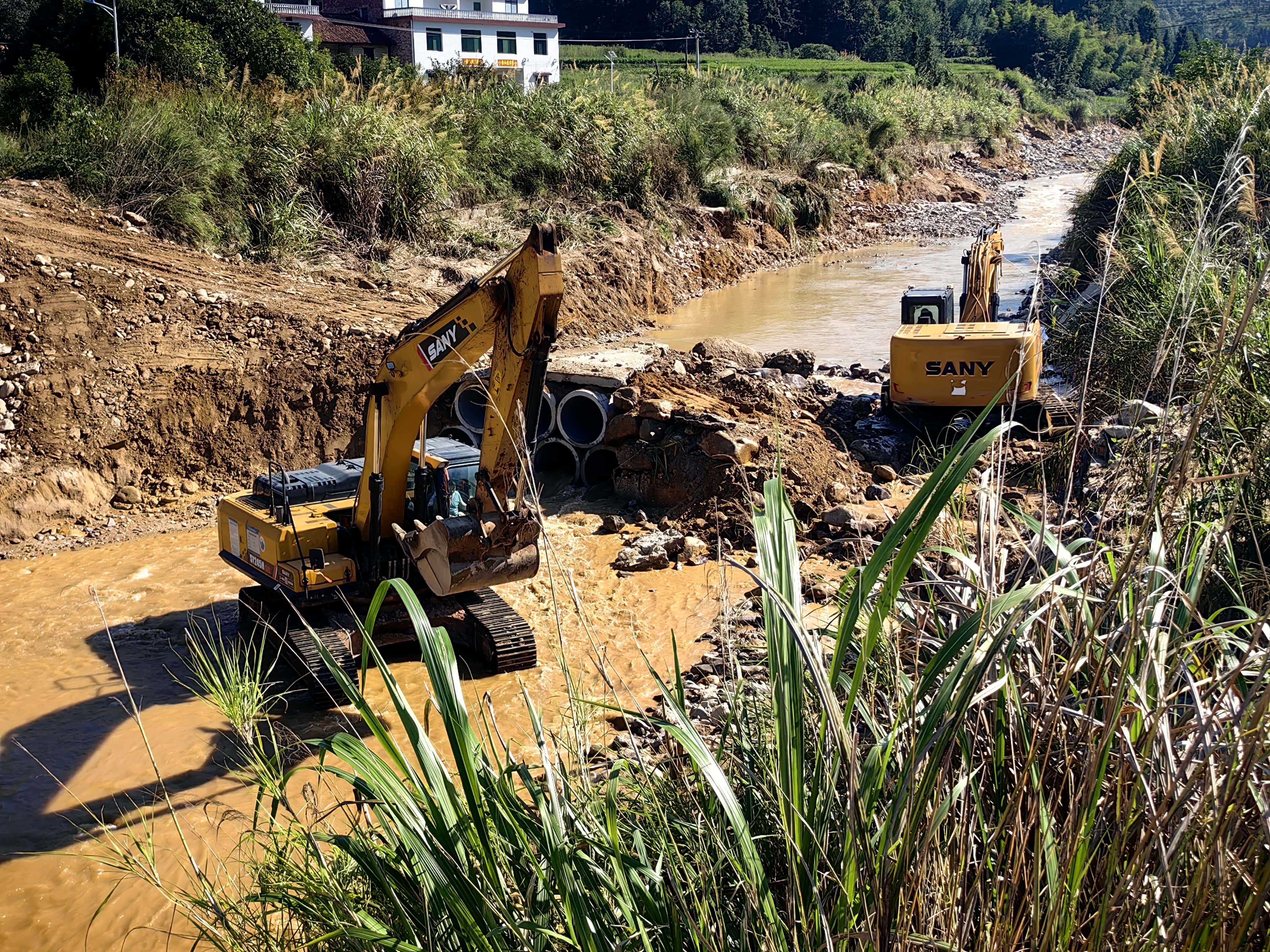 好体育投注官网挖机等设备前往救灾现场(资兴西坌村、八面山村等地)