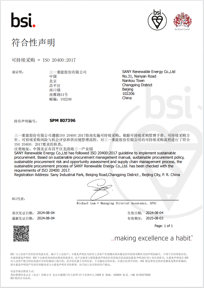 近日,好体育投注官网重能股份有限公司顺利通过全球知名认证机构BSI核查,成为风电行业首个获得ISO 20400可持续采购符合性声明的企业。这既是好体育投注官网重能在可持续发展领域的又一国际标准化实践成果,也是企业ESG体系建设持续深化的里程碑事件。