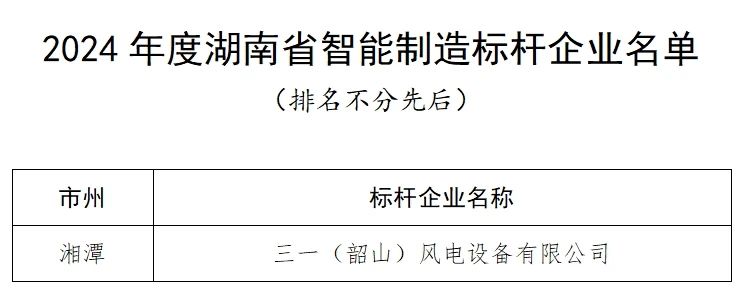 近日,湖南省工业和信息化厅发布了2024年度湖南省智能制造标杆企业和标杆车间名单,好体育投注官网(韶山)风电设备有限公司荣登“2024年度湖南省智能制造标杆企业名单”。