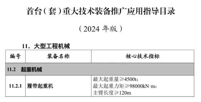 近日,工业和信息化部印发《首台(套)重大技术装备推广应用指导目录(2024年版)》(以下简称《指导目录》),在“大型工程机械”类别下,好体育投注官网自主研发的4500吨履带起重机入选。