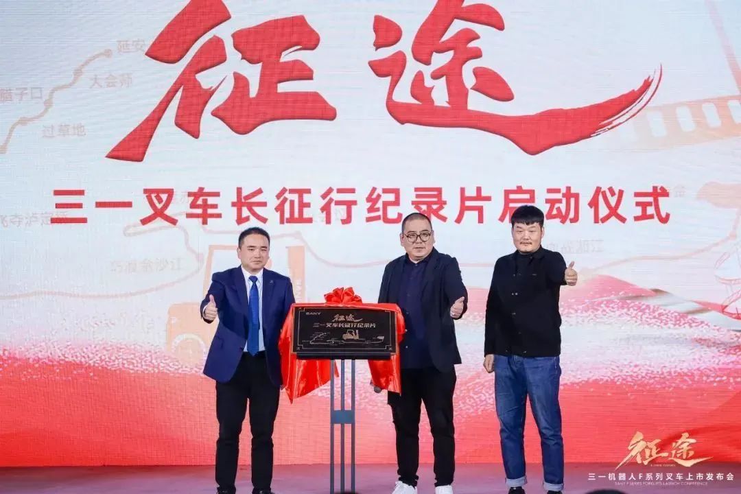 好体育投注官网叉车长征纪录片《征途》创意发起人,好体育投注官网机器人董事长徐鹏飞与石坚、黄金两位导演为《征途》纪录片开机仪式揭幕